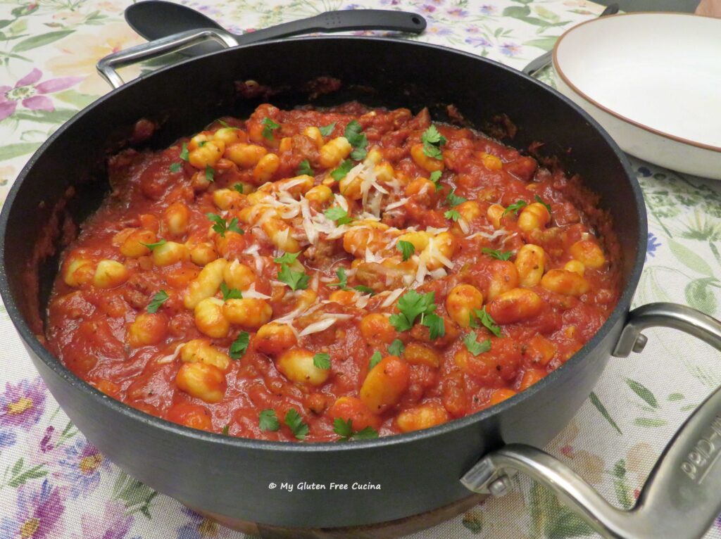 Did you notice that there are no eggs in the ingredient list? Traditional Malloreddus Pasta is egg free. Only flour, water and salt. I know that some of my readers can’t have eggs, if you are one of them then this pasta is for you!