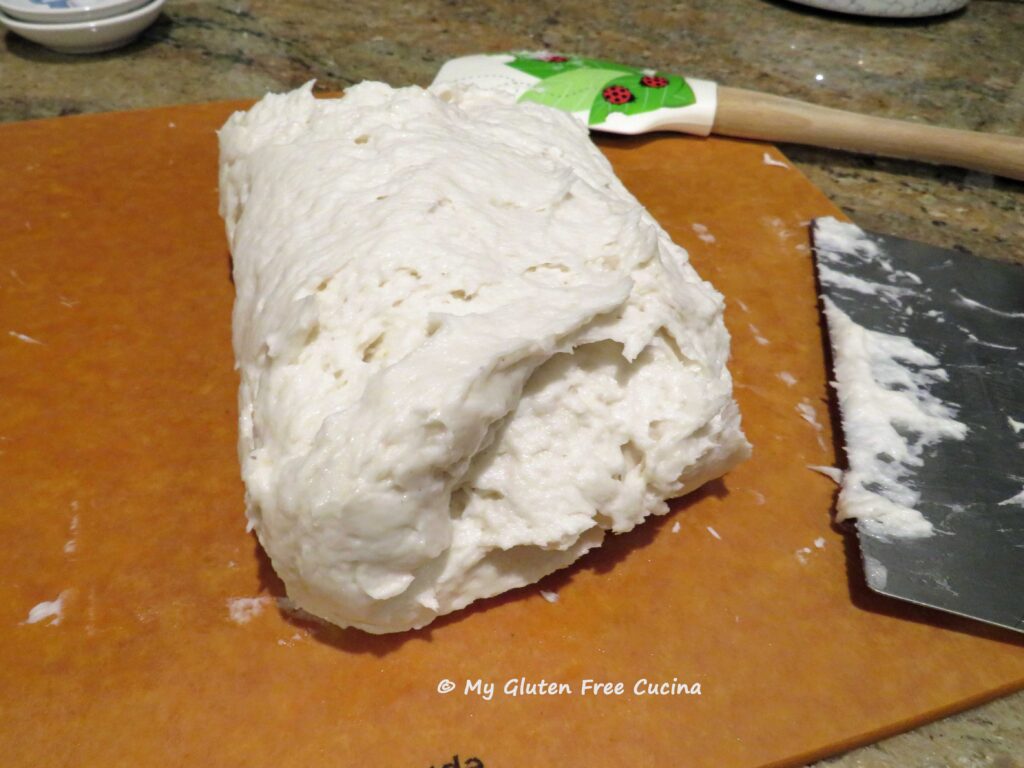 The dough will be sticky, and you won’t be able to handle it like you would a wheat dough (i.e. “stretch and fold”).  But- after a few dozen folds you should have a nice smooth ball.