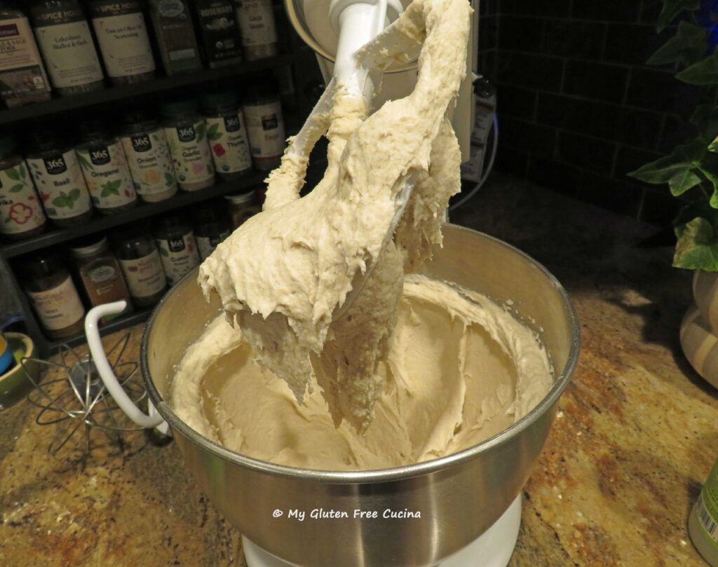 Add the dry ingredients to the wet and mix with the paddle attachment for 8 minutes to form a thick batter.