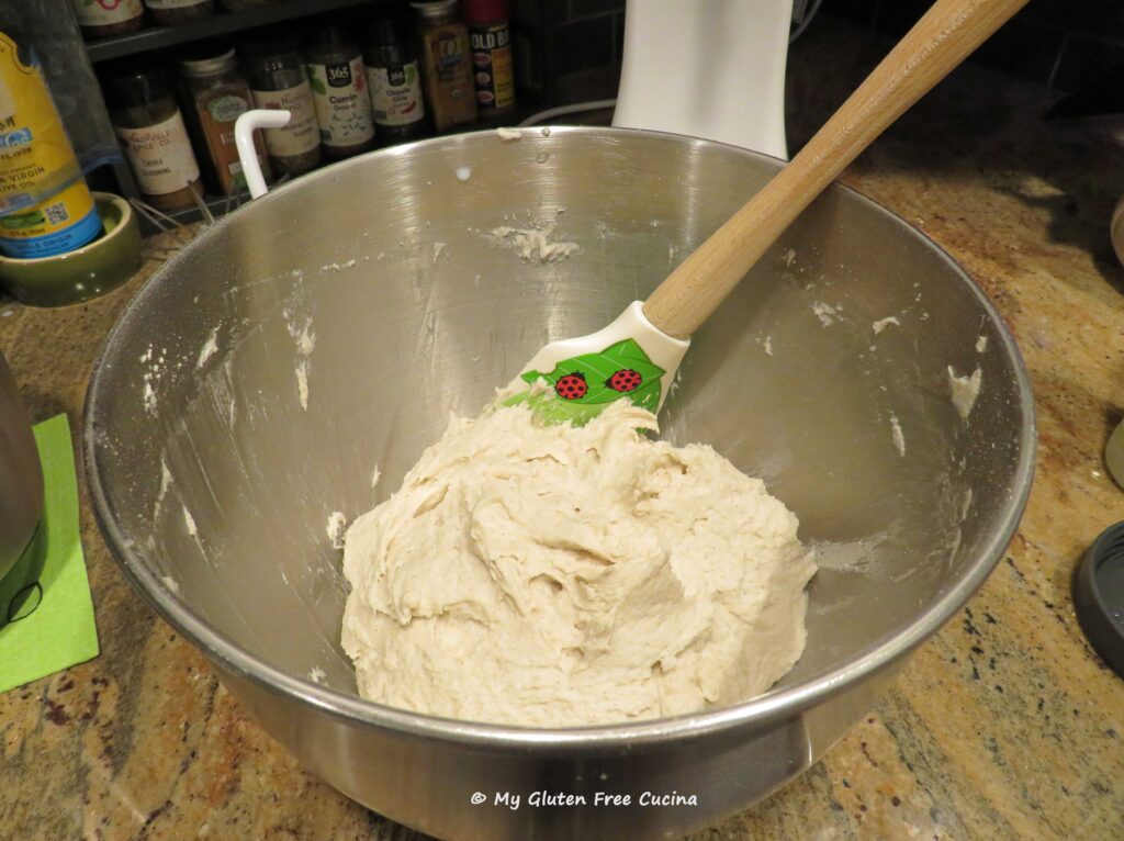 Gather the dough together in the mixer bowl, cover and let it rest for 20 minutes.