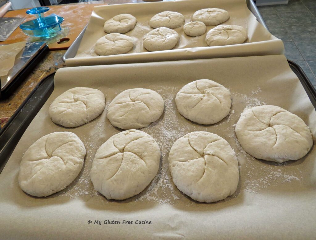 Cover the rolls and let them rest for 30 minutes while you preheat the oven to 475º. Score the top of each roll.
