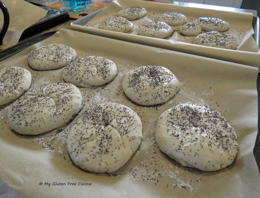 Continue with the rest of the dough, arranging your shaped rolls on a parchment lined baking sheet (use 2 sheets if needed).