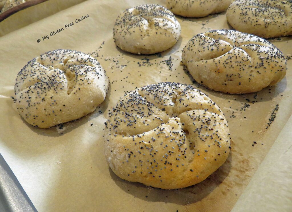 Notes ♪ Baking times given are for 2.5 oz. rolls. If you make yours smaller or larger you will need to adjust accordingly. Remember, the internal temperature should reach 210º, check- don’t guess, use a thermometer!